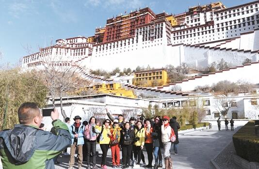 4月的拉薩春意盎然,跟隨春的腳步而來的是日漸增多的游客,近日,拉薩市各主要景點和風景名勝區(qū)內人頭攢動。記者在布達拉宮廣場看到,游客或身著藏民族服飾合影留念,或穿行于廣場公園賞花游玩,或湖面泛舟感受垂柳映春水的意境。圖為游客們在布達拉宮前合影留念。巴桑次仁攝