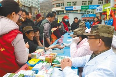 4月初,解放軍第75醫(yī)院官兵組織醫(yī)療隊(duì)進(jìn)行愛民服務(wù)活動(dòng),為駐地群眾提供醫(yī)療咨詢服務(wù)、免費(fèi)檢查身體、贈(zèng)送藥品。 圖為愛民服務(wù)活動(dòng)現(xiàn)場(chǎng)。 陳志強(qiáng) 攝