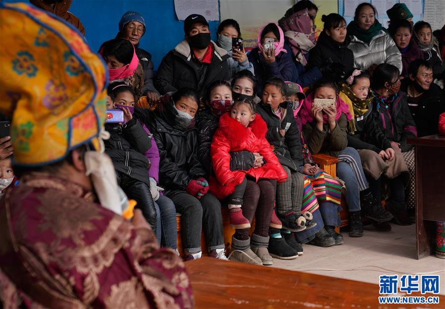 雙湖縣嘎措鄉(xiāng)的牧民在觀看節(jié)日期間文藝下鄉(xiāng)活動的表演(1月31日攝)。 新華社記者 普布扎西 攝