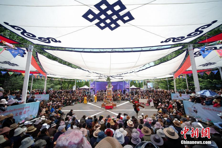 5月25日,大批民眾正在觀看藏戲表演。當日,2019年“藏戲演出季”第二場演出在西藏拉薩布達拉宮腳下的宗角祿康公園開演。據(jù)了解,2019年藏戲演出季將持續(xù)到今年的7月20日,每周六來自拉薩八縣區(qū)的優(yōu)秀藏戲隊將相繼進行公益表演。中新社記者 何蓬磊 攝