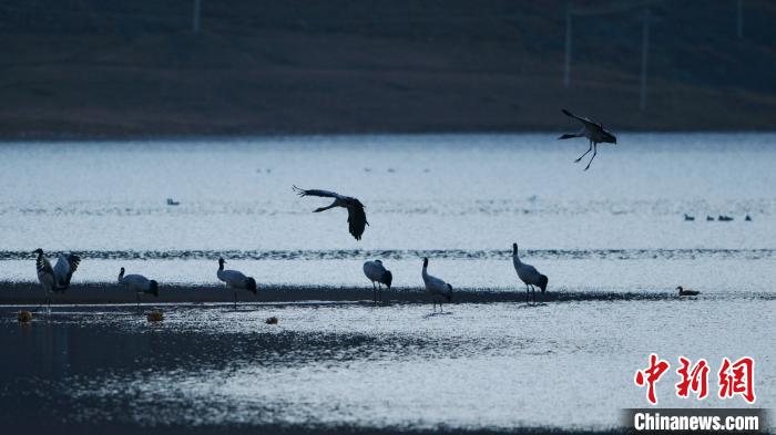 記者本月15日至16日從西藏拉薩市林周縣澎波河流域觀察了解到,中國國家一級保護(hù)動物黑頸鶴已大量遷徙至該區(qū)域越冬。