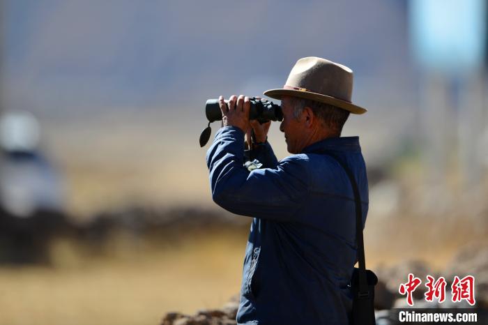 圖為西藏林周縣黑頸鶴巡護(hù)員旦增,每年入冬后他要負(fù)責(zé)轄區(qū)黑頸鶴安全過冬。 江飛波 攝