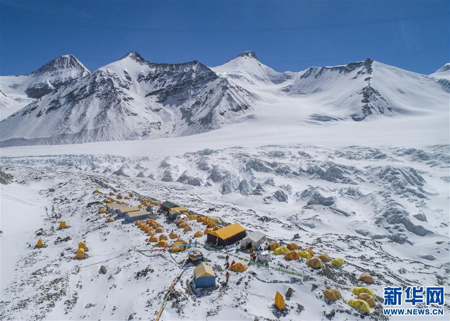 這是海拔6500米的珠峰前進(jìn)營(yíng)地(5月10日無(wú)人機(jī)照片)。新華社記者 孫非 攝