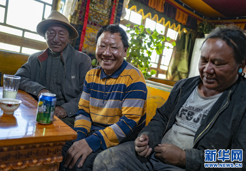 “牛頭旅館”老板多吉(中)和朋友在旅館里聊天(5月17日攝)。新華社記者 普布扎西 攝