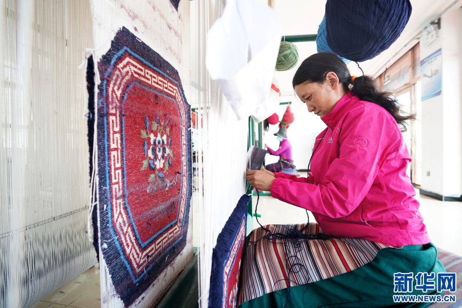西藏阿里地區(qū)改則縣麻米鄉(xiāng)村民崗增在噶爾縣康樂新居服裝地毯加工廠里工作(7月25日攝)。2017年,崗增和家人搬遷到噶爾縣康樂新居易地扶貧搬遷安置點(diǎn),住進(jìn)了125平方米的新居。崗增還就近在安置點(diǎn)的服裝地毯加工廠找到了工作,每個(gè)月有3000元左右的收入。新華社記者詹彥 攝