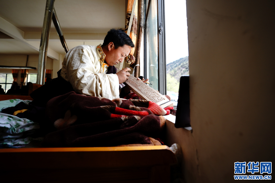 在西藏昌都市江達(dá)縣波羅鄉(xiāng)木松民族手工藝有限責(zé)任公司,波羅鄉(xiāng)村民白瑪加村在制作木刻(5月1日攝)。白瑪加村2017年開始學(xué)習(xí)波羅木刻,如今已經(jīng)出師,成為一個(gè)熟練的木刻藝人。在公司里,白瑪加村一個(gè)月能制作6塊木刻作品,每個(gè)月有4000多元的收入。新華社記者詹彥 攝