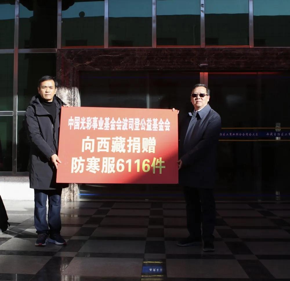 捐贈(zèng)儀式上,王念東同志代表西藏接受捐贈(zèng)并向群眾代表發(fā)放波司登防寒服,對(duì)中國(guó)光彩事業(yè)基金會(huì)和波司登公益基金會(huì)表示感謝。波司登公益基金會(huì)共捐贈(zèng)價(jià)值人民幣389萬(wàn)元的6116件羽絨服,惠及西藏4個(gè)市(地)6000余貧困群眾。