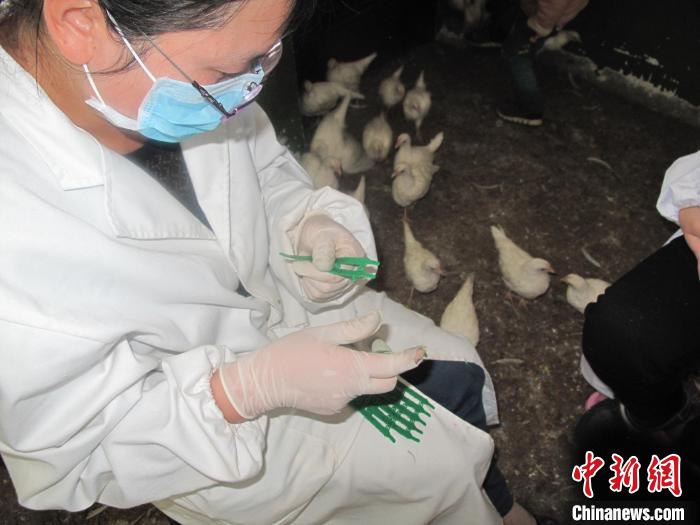 圖為西藏自治區(qū)農(nóng)科院畜牧獸醫(yī)研究所工作人員準(zhǔn)備為種雞標(biāo)號(hào)。西藏自治區(qū)農(nóng)科院畜牧獸醫(yī)研究所供圖