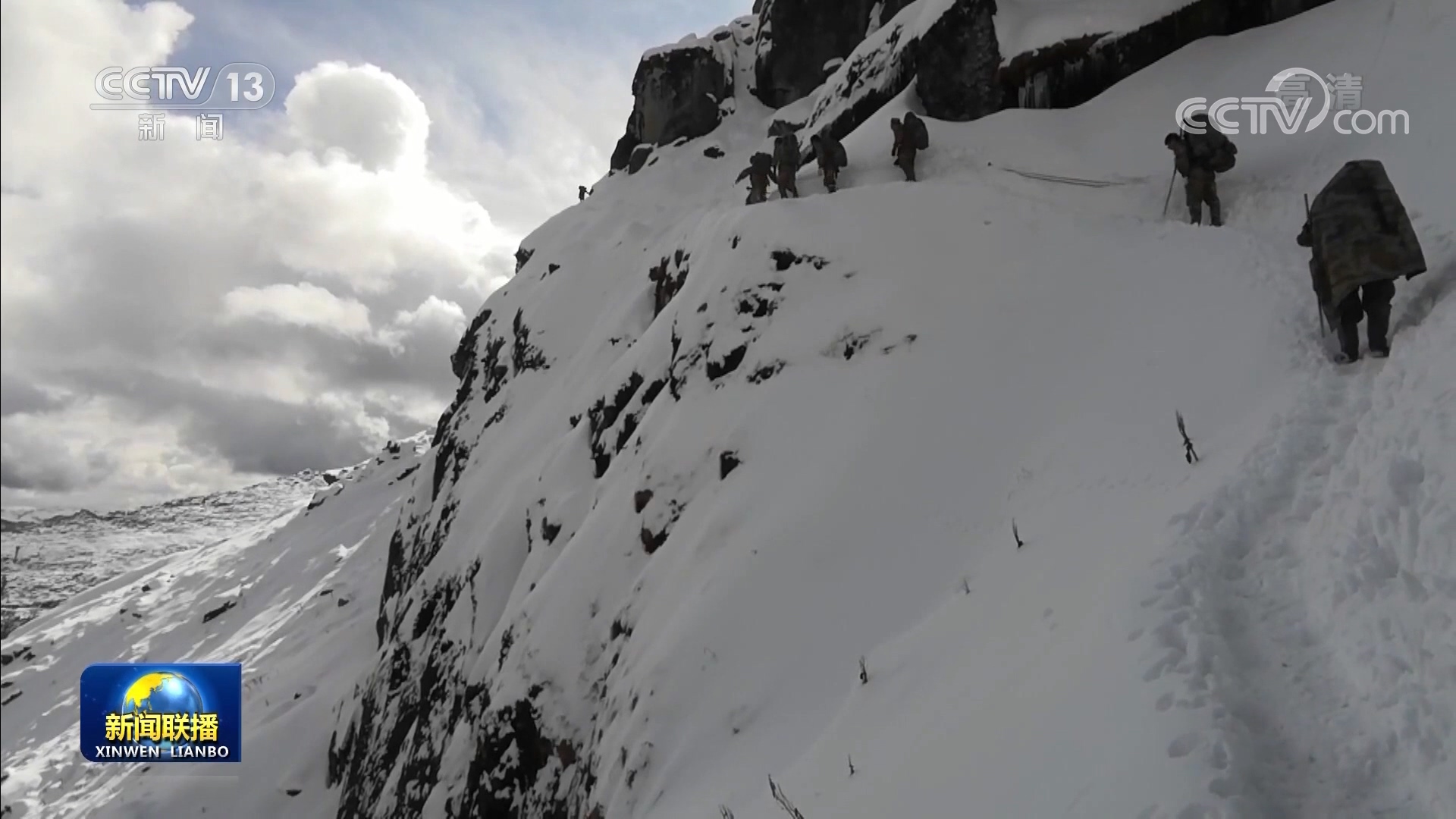 一邊是絕壁,一邊是懸崖,官兵們手腳并用,注意力高度集中緩慢通過。