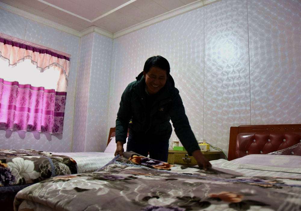 下午四五點,走進村民旺青家,一家人正在吃飯。他們是2019年從隆子縣熱榮鄉(xiāng)搬遷而來的,夫妻倆整天都在忙家庭旅館裝修的事?!耙恢泵Φ竭@個點,才吃午飯。夏天游客多,客房供不應求,趁著快過春節(jié)和藏歷新年了,客人少了,趕緊對客房和餐館進行改造升級?!蓖嗾f,“夏天我在外跑運輸,妻子在家經(jīng)營客棧,家庭年收入超過10萬元,親戚朋友都很羨慕。我計劃再攢點錢買輛載貨量更大的卡車?!?/p>
