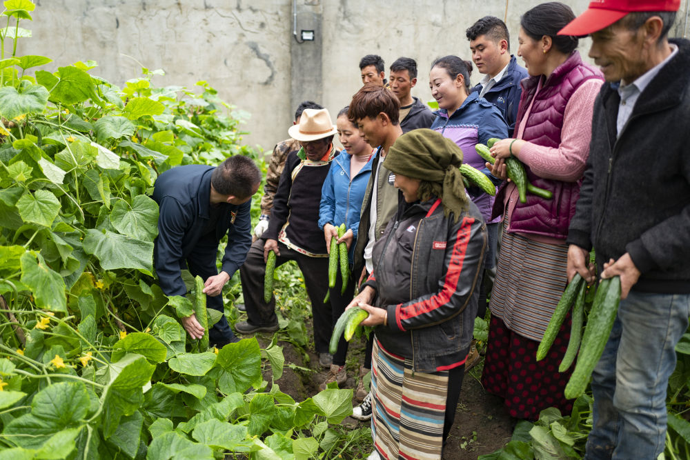玉麥鄉(xiāng)群眾在蔬菜大棚里學習種植蔬菜技術(2020年7月30日攝)。 新華社記者 普布扎西 攝