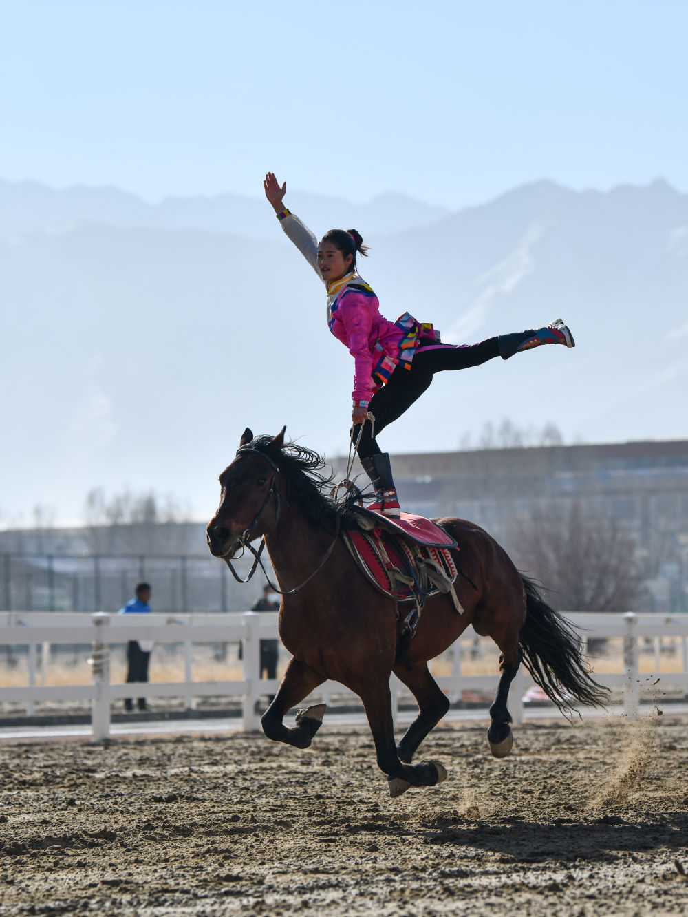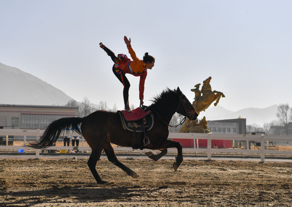 2月14日,為慶祝藏歷新年,西藏自治區(qū)體育局組織自治區(qū)馬術(shù)隊(duì)在拉薩北郊賽馬場(chǎng)舉行馬術(shù)表演。因疫情防控需要,這次表演被搬到“線上”,通過網(wǎng)絡(luò)直播發(fā)布。