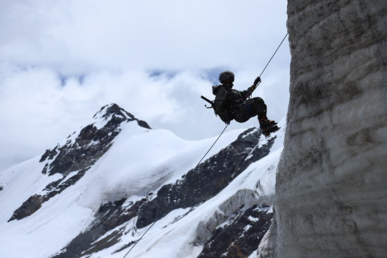 登頂稍事休息后,他們又繼續(xù)前進,展開武裝泅渡、水面射擊、牽引橫越、滑降等課目訓(xùn)練。就是在這一次,他們創(chuàng)造了泅渡、橫越海拔4500米以上天湖的先例。