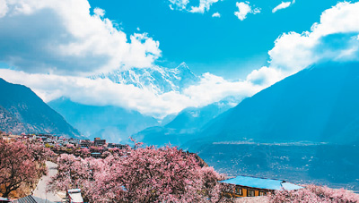 南迦巴瓦峰下桃花盛開(kāi)。新華社記者 侯捷攝