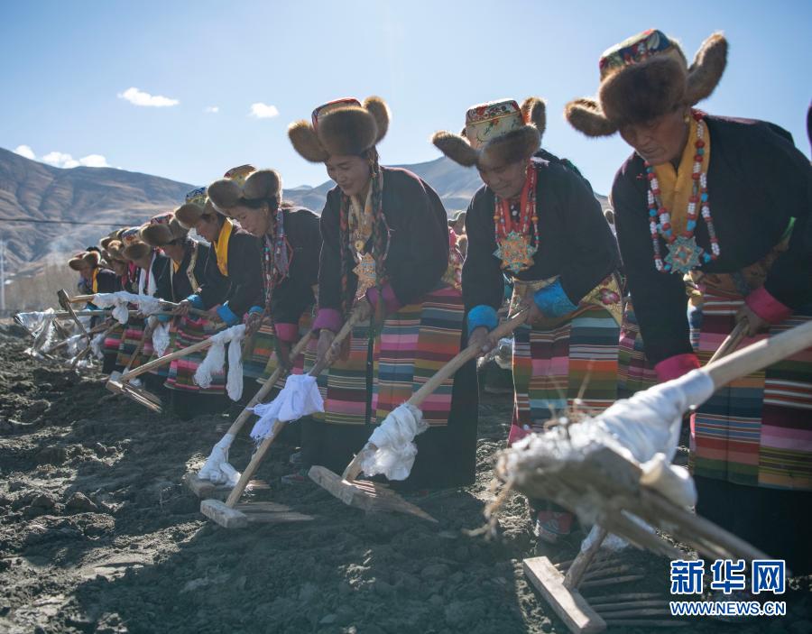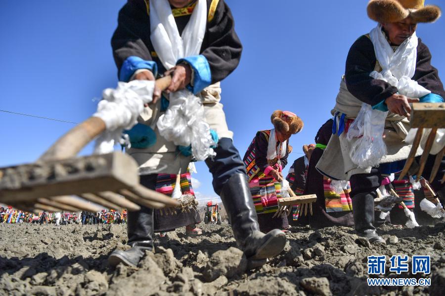 3月16日,克松社區(qū)居民在參加春耕儀式。新華社記者 晉美多吉 攝