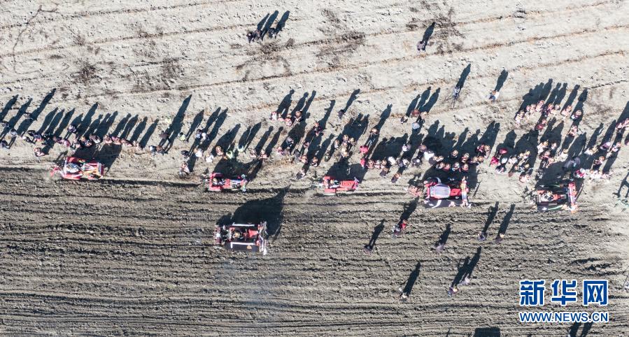 3月16日,克松社區(qū)居民在參加春耕儀式(無人機(jī)照片)。新華社記者 晉美多吉 攝