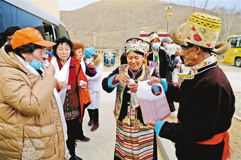 強吉村村民迎接游客。倫珠次仁 記者 洛桑 攝
