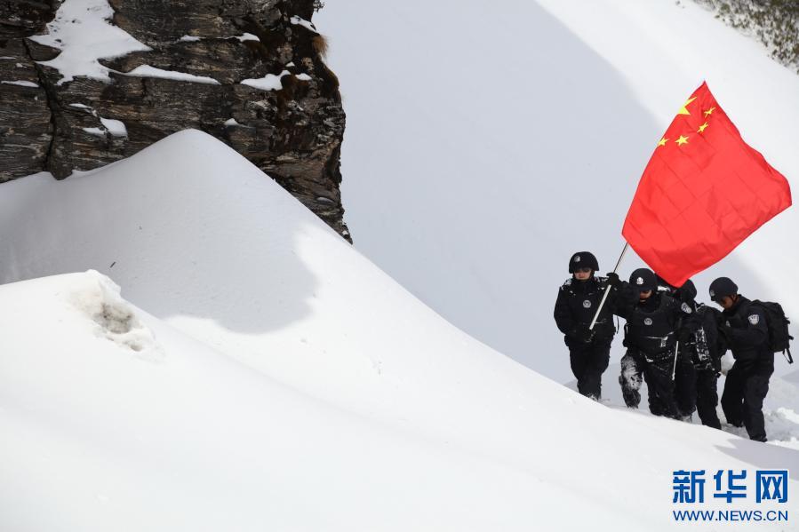 楊帆等5位警察正在乃堆拉巡邏(2021年3月19日攝) 新華社發(fā) 張雨強攝