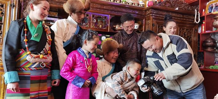 今年2月,索朗多杰為次仁白姆一家拍攝的全家福照片。圖由索朗多杰提供
