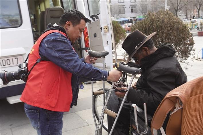 索朗多杰幫助殘疾人朋友。圖由索朗多杰提供