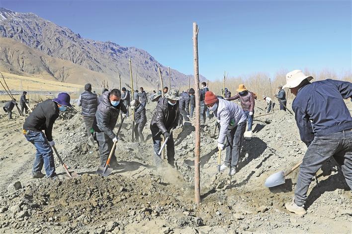 圖為山南市瓊結(jié)縣干部群眾開(kāi)展植樹造林活動(dòng)。