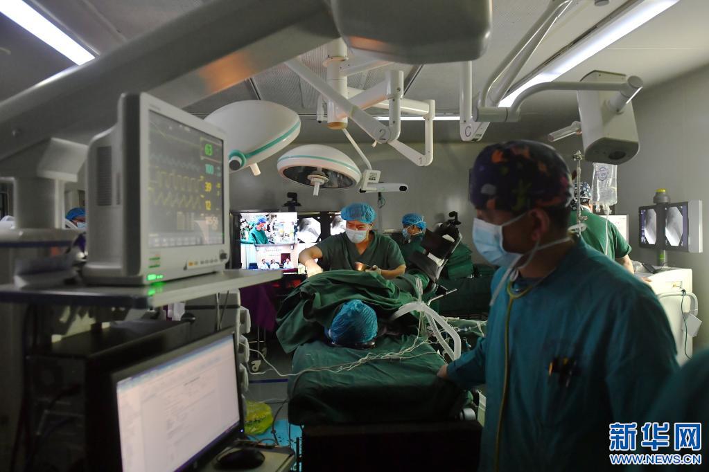 4月19日,拉薩市人民醫(yī)院骨科醫(yī)生在北京積水潭醫(yī)院專家遠(yuǎn)程指導(dǎo)下使用骨科機(jī)器人開展骨科手術(shù)。新華社記者 孫瑞博 攝