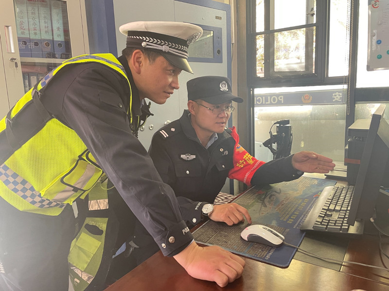 交警和警務(wù)站民警通過(guò)視頻巡查路面車(chē)輛通行情況。