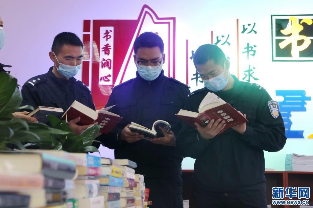 亞東出入境邊防檢查站民警在圖書室借閱書籍。(張雨強(qiáng)攝,新華社發(fā))