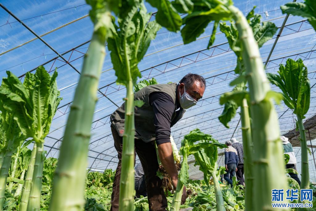 西藏曲水縣南木鄉(xiāng)江村的村民在大棚內采摘蔬菜(2020年2月20日攝)。 新華社記者 普布扎西 攝