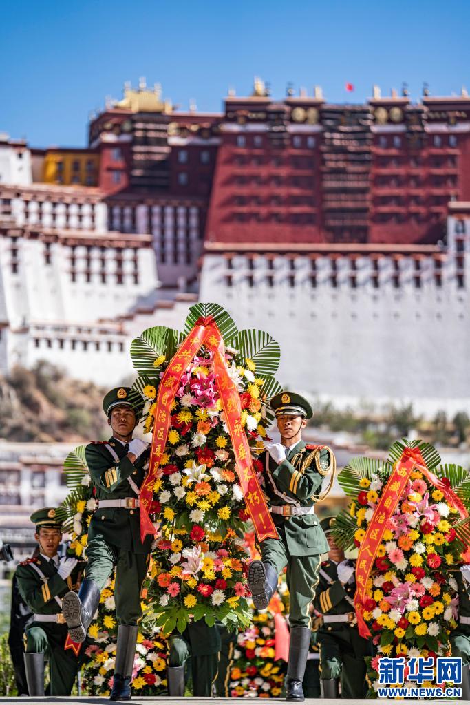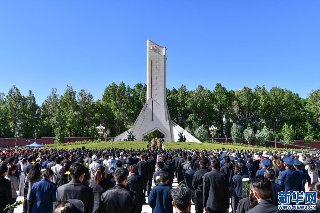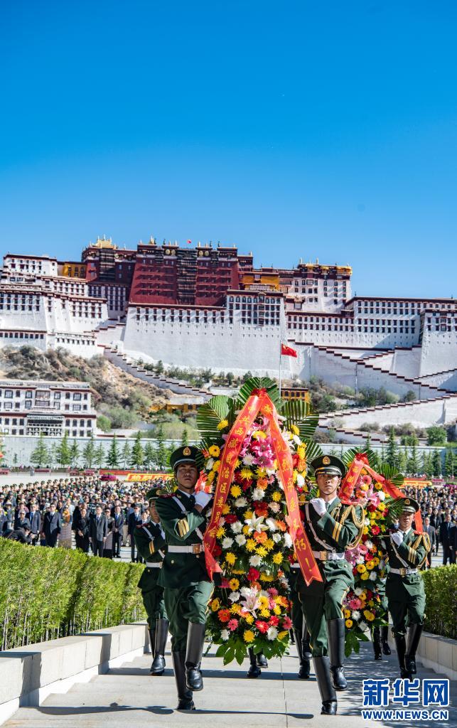 5月23日,西藏各族各界群眾一千余人在西藏和平解放紀(jì)念碑前,向革命先烈敬獻(xiàn)花籃、鮮花,深切緬懷為西藏和平解放事業(yè)英勇?tīng)奚母锩攘摇?/p>