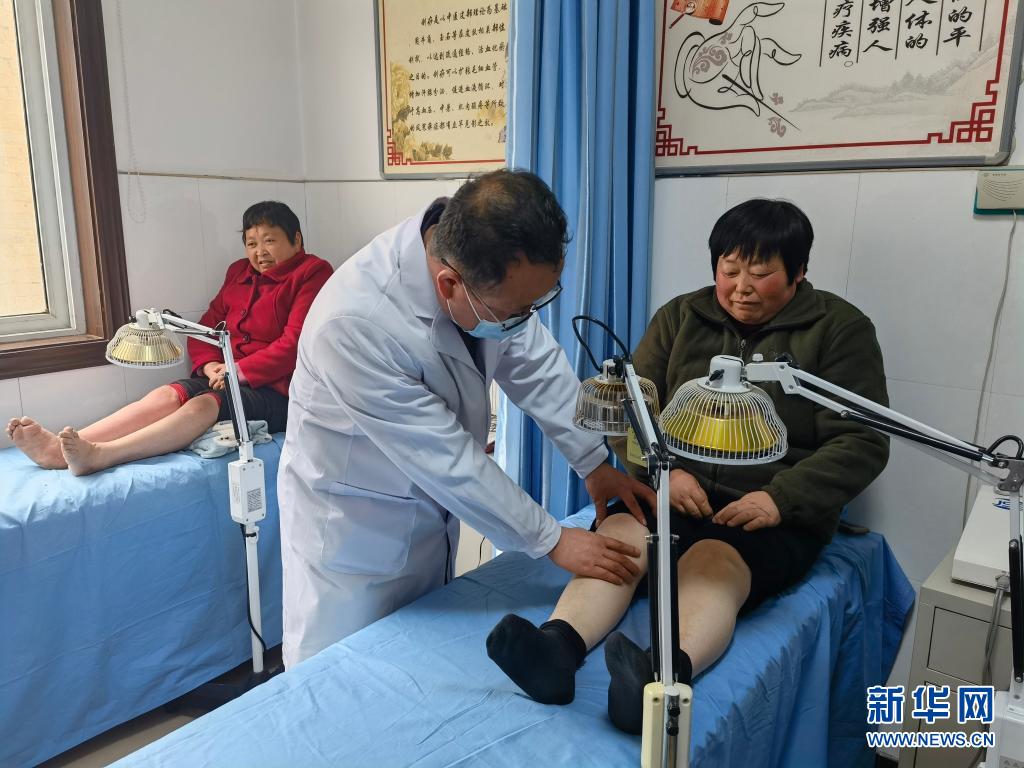 陜西省寶雞市麟游縣崔木鎮(zhèn)中心衛(wèi)生院內(nèi),醫(yī)生為大骨節(jié)病患者進(jìn)行中醫(yī)理療(4月6日攝)。新華社記者 藺娟 攝