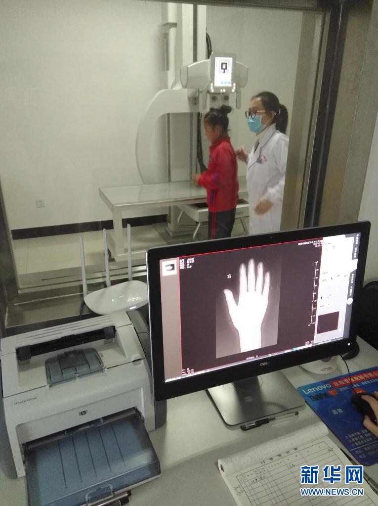 在甘肅省慶陽(yáng)市,醫(yī)生在對(duì)疑似大骨節(jié)病的兒童開(kāi)展X線檢查(2018年10月29日攝)。新華社發(fā)