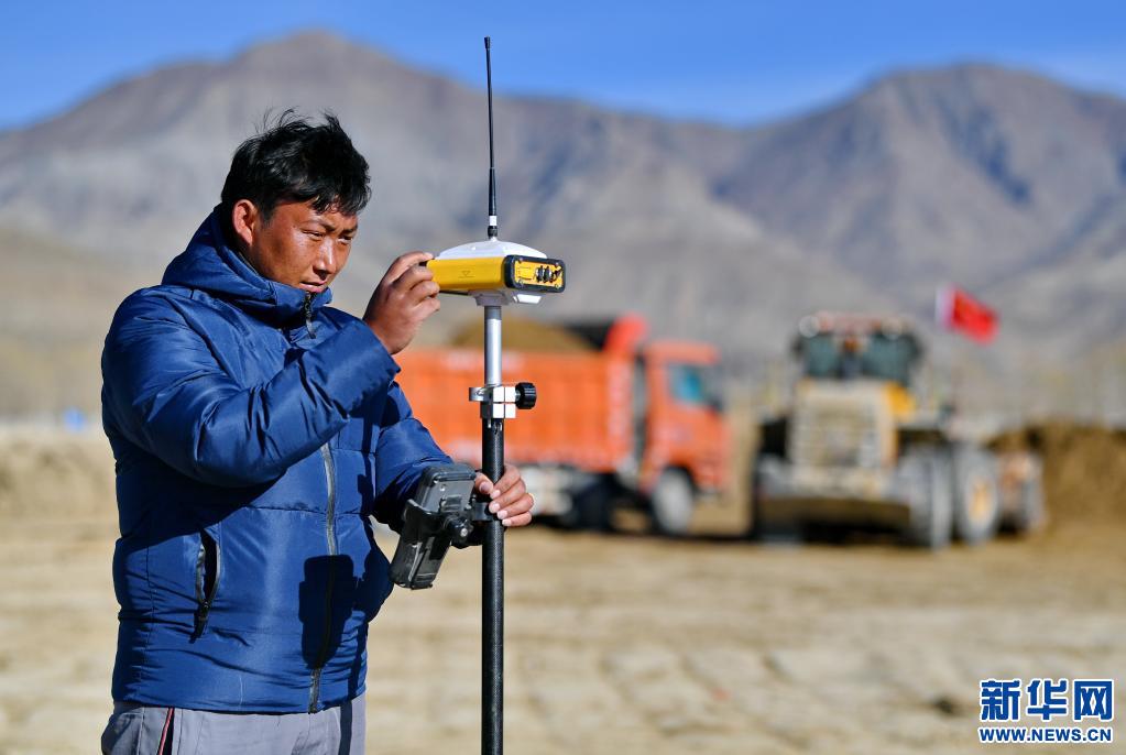 日喀則市桑珠孜區(qū)那塘村,測繪人員在高標(biāo)準(zhǔn)農(nóng)田項(xiàng)目施工現(xiàn)場進(jìn)行測量(2020年3月1日) 新華社記者張汝鋒 攝