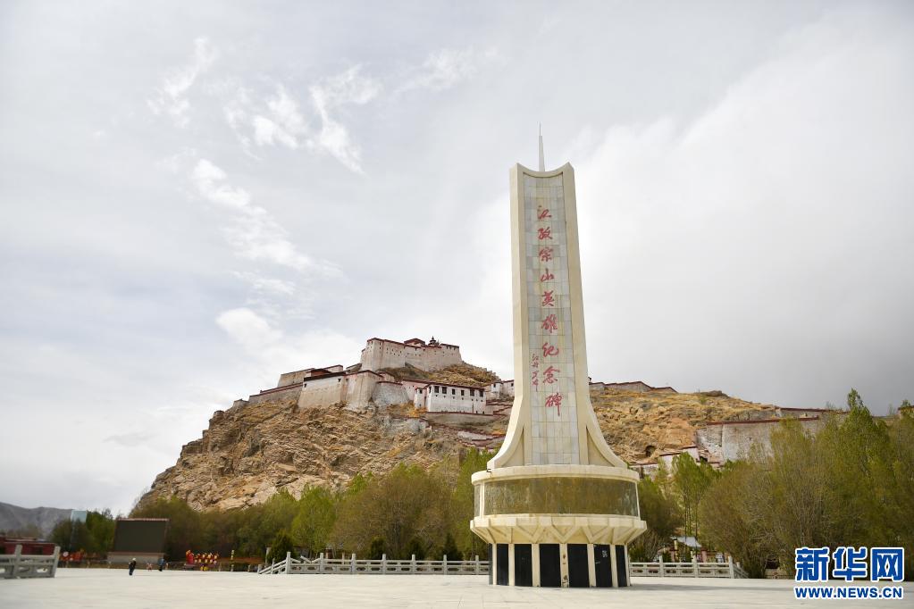 這是5月10日在江孜縣拍攝的江孜宗山英雄紀(jì)念碑和江孜宗山古堡。新華社記者 孫瑞博 攝
