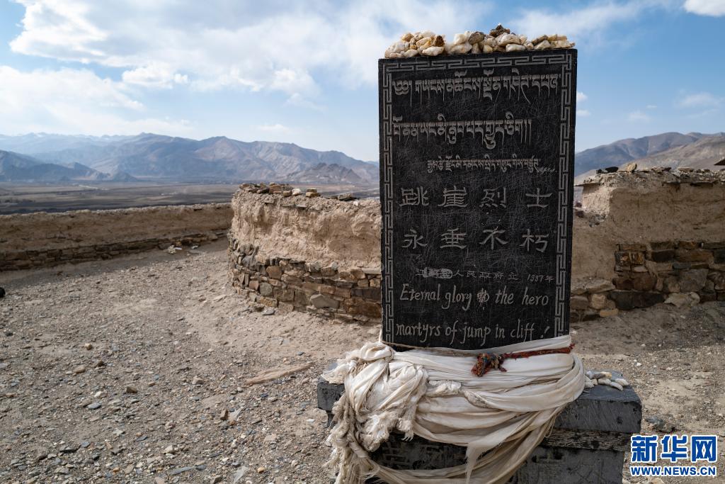 這是3月23日在江孜宗山古堡拍攝的跳崖英雄紀(jì)念碑。新華社記者 孫瑞博 攝