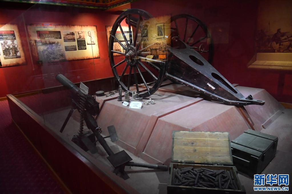 這是5月10日在江孜抗英紀(jì)念館拍攝的英軍侵略西藏時使用的大炮和機(jī)槍。新華社記者 孫瑞博 攝