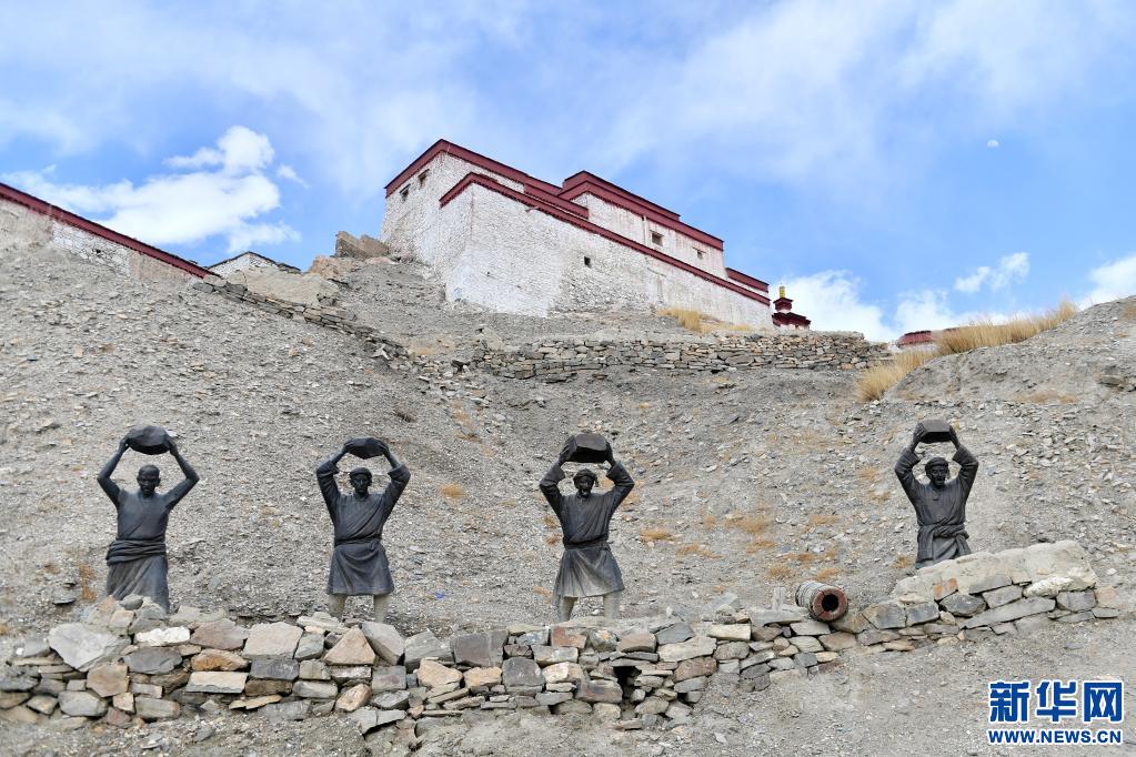 這是3月23日在江孜宗山古堡拍攝的抗英雕像。新華社記者 孫瑞博 攝