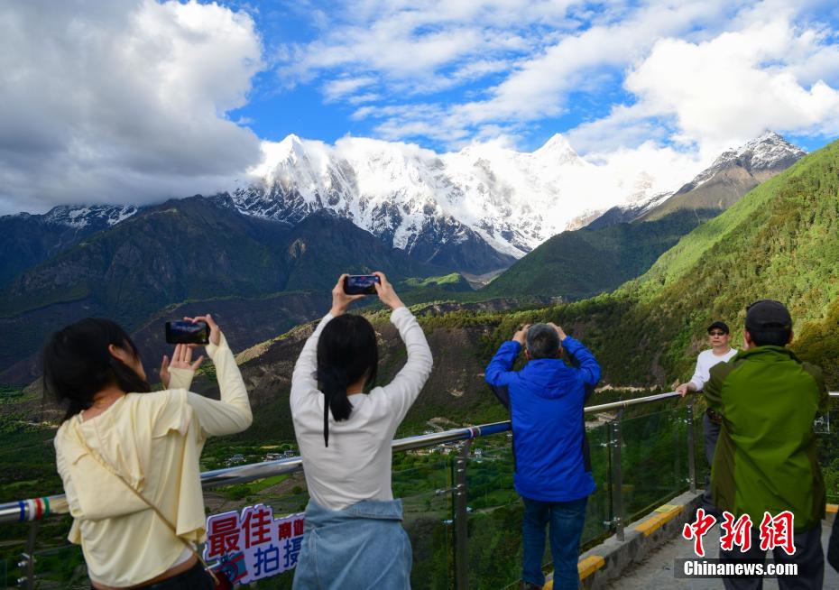 圖為游客在大峽谷觀景臺拍攝南迦巴瓦峰美景。 貢嘎來松 攝