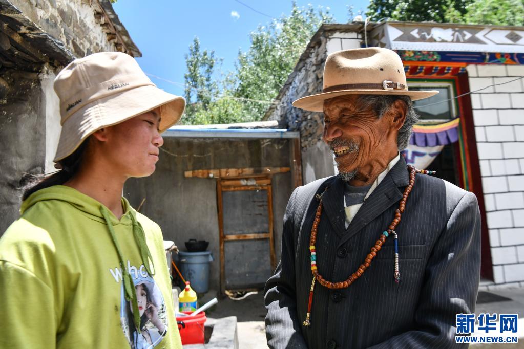 朗杰多吉和孫女在一起(6月5日攝)。新華社記者 晉美多吉 攝