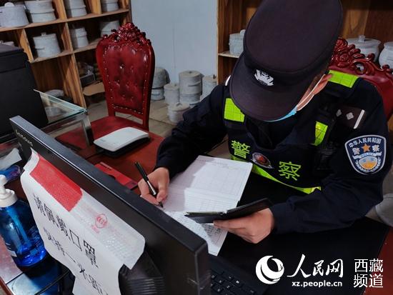 詳細(xì)登記過(guò)往人員和車輛的信息。人民網(wǎng) 李海霞攝