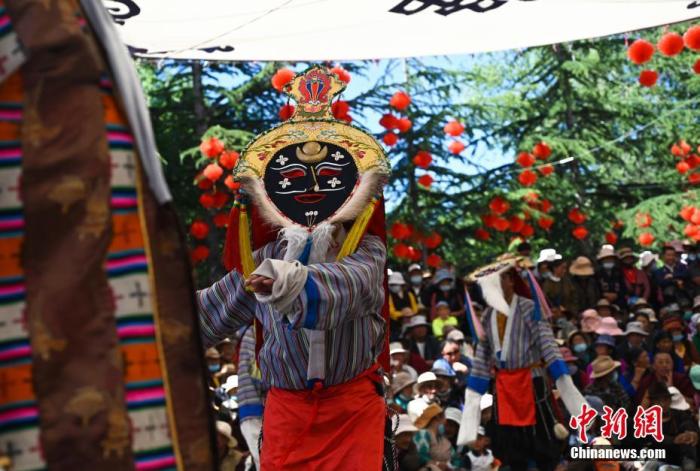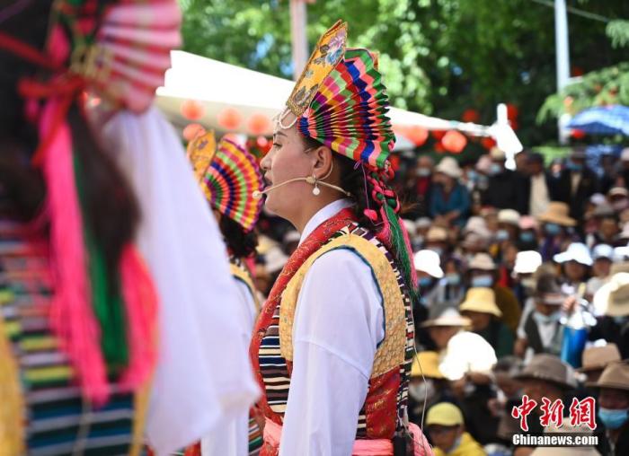 圖為6月26日,拉薩城關(guān)區(qū)次角林藏戲隊演員正在進行表演。中新社記者 趙朗 攝