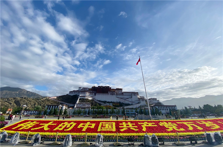 七一”前夕,走在拉薩街頭,慶祝建黨100周年的主題標(biāo)識隨處可見,布達(dá)拉宮廣場裝點(diǎn)一新,宗角祿康公園花團(tuán)錦簇,處處洋溢著喜迎建黨百年的濃烈氛圍。為熱烈慶祝中國共產(chǎn)黨成立100周年,全市主次干道、門戶立交、公園、廣場等地大型主題雕塑、立體花雕、地面擺花為主要表現(xiàn)形式,營造建黨百年的濃烈氛圍,美麗拉薩煥然一新,慶祝百年華誕。