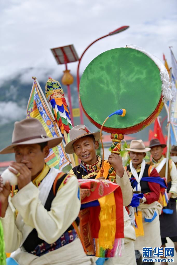 當(dāng)日,易地扶貧搬遷新村——西藏山南市加查縣冷達(dá)鄉(xiāng)共康村的村民們身著盛裝歡度“望果節(jié)”?!巴?jié)”是西藏農(nóng)區(qū)在青稞麥田成熟之際祈求豐收的節(jié)日,據(jù)傳有1500多年的歷史,因各地青稞成熟時(shí)間不一,“望果節(jié)”時(shí)間也各異。