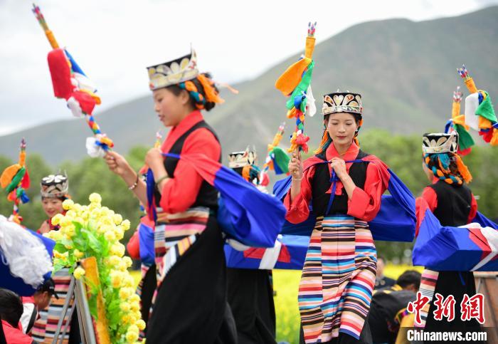 圖為西藏自治區(qū)拉薩市墨竹工卡縣小油菜花文化旅游節(jié)表演舞蹈《田間歡歌》。貢嘎來松 攝