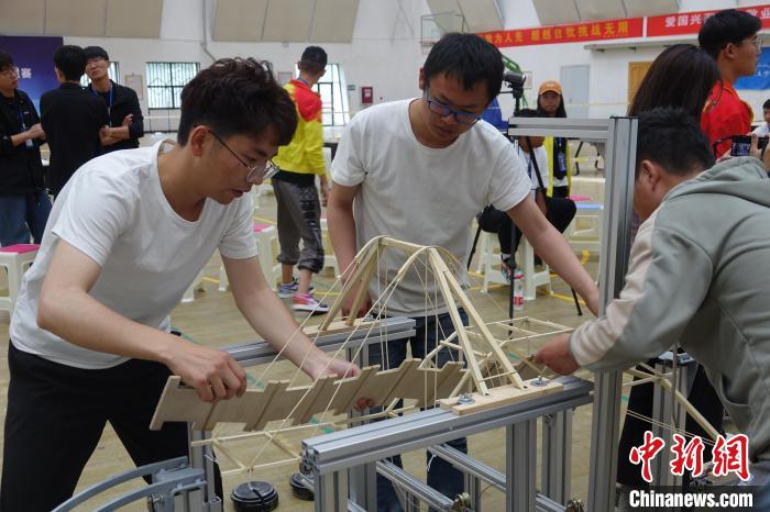 圖為第三屆西藏大學(xué)生結(jié)構(gòu)設(shè)計(jì)競賽比賽現(xiàn)場。冉文娟 攝
