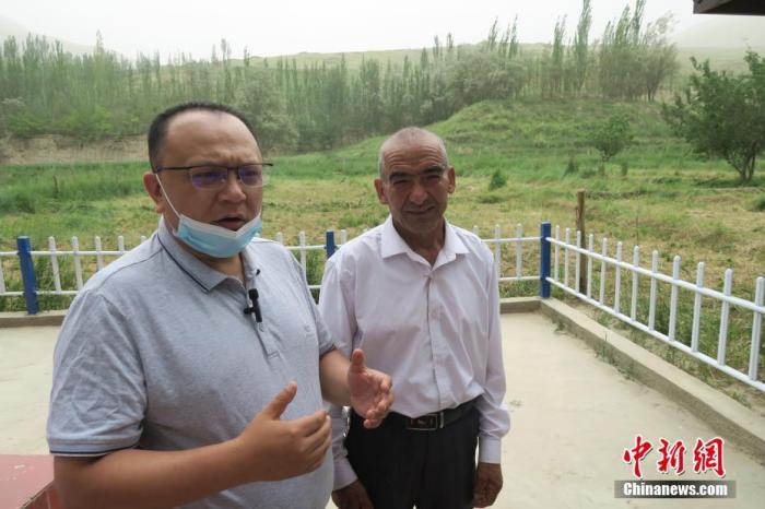圖右為新疆維吾爾自治區(qū)和田地區(qū)于田縣普魯村村民西日普·依布地,他也是當年先遣連見證者的后代。 中新社記者 楊程晨 攝