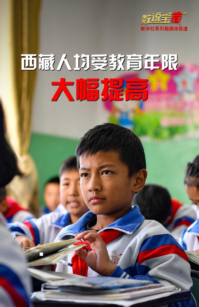 70年間,西藏通過(guò)完善現(xiàn)代教育體系、實(shí)行15年公費(fèi)教育等多種舉措,文盲率顯著下降,人均受教育年限得到大幅提高?!段鞑睾推浇夥排c繁榮發(fā)展》白皮書顯示:目前西藏新增勞動(dòng)力人均受教育年限提高到13.1年。