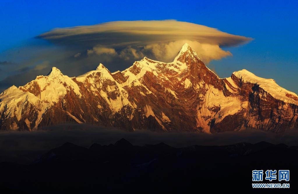 這是2017年12月24日拍攝的夕陽下的南迦巴瓦峰。新華社發(fā)(欒遠(yuǎn)春 攝)