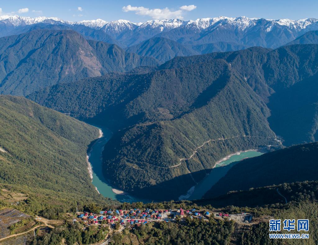 這是2月9日拍攝的位于雅魯藏布江邊的林芝市墨脫縣德興鄉(xiāng)巴登則村(無人機(jī)照片)。新華社記者 孫非 攝