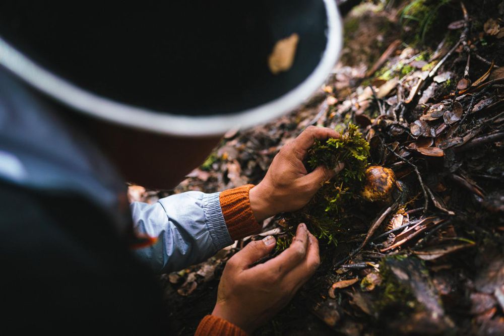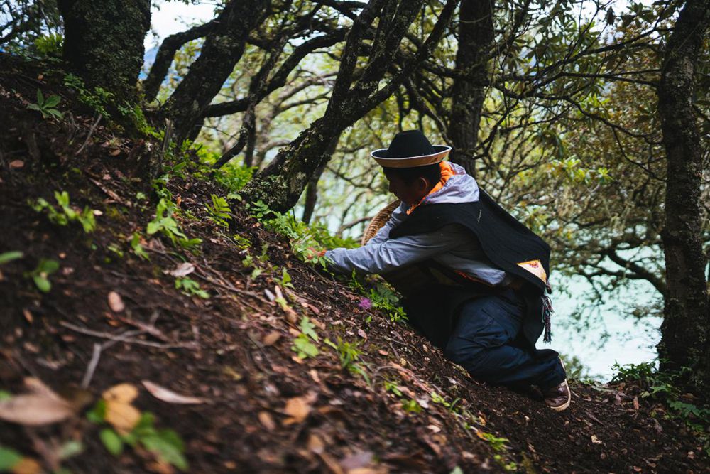 發(fā)現(xiàn)松茸,輕輕將其摘下。圖片由林芝市松茸協(xié)會提供